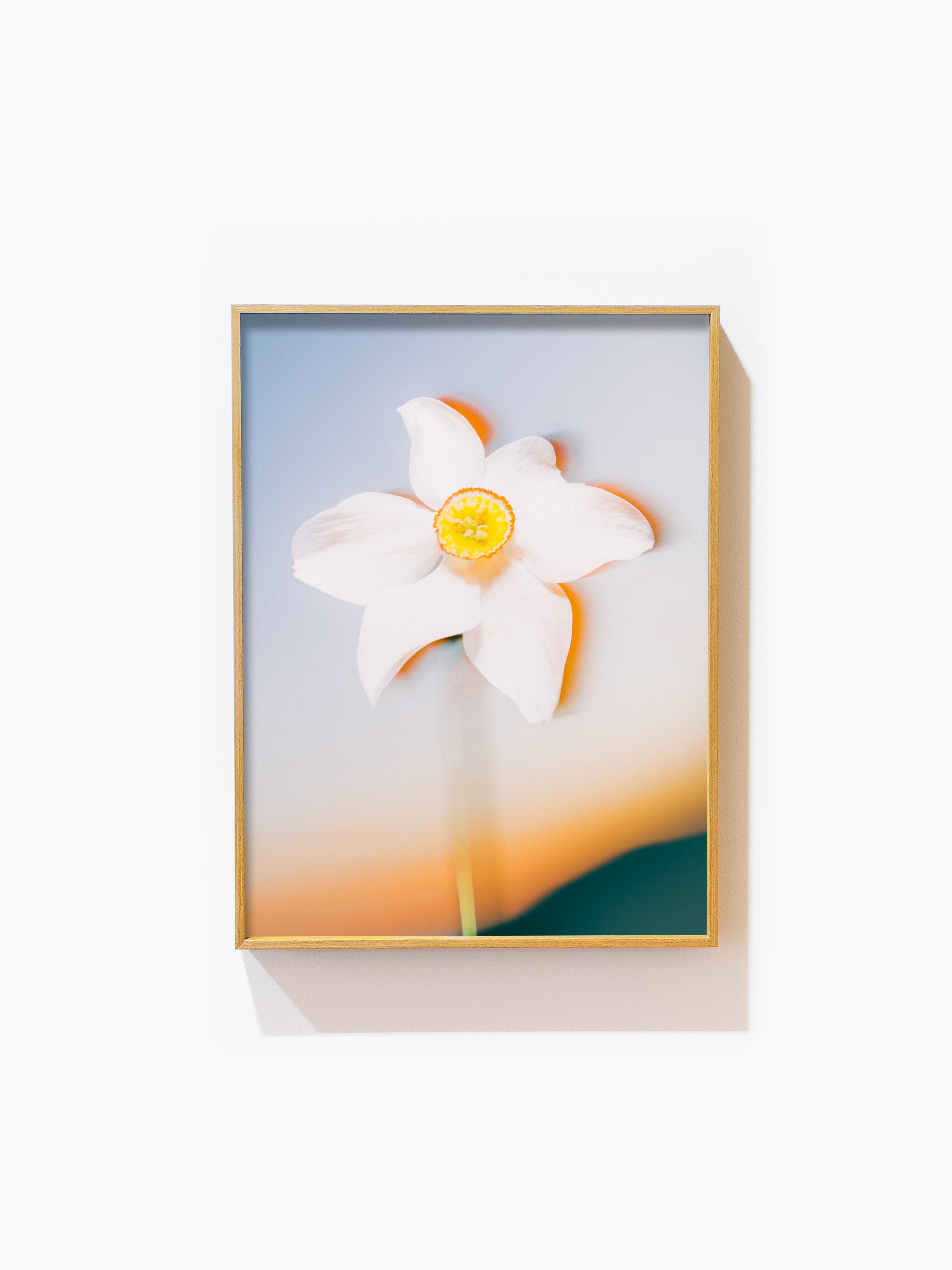 A framing option is available. Frames up to 80 cm in length feature an aluminum base with a visible oak wood finish. Frames for formats exceeding 80 cm in length are made of solid oak wood. All frames are delivered with anti-reflective, 70% UV-protective glass, significantly reducing glare.