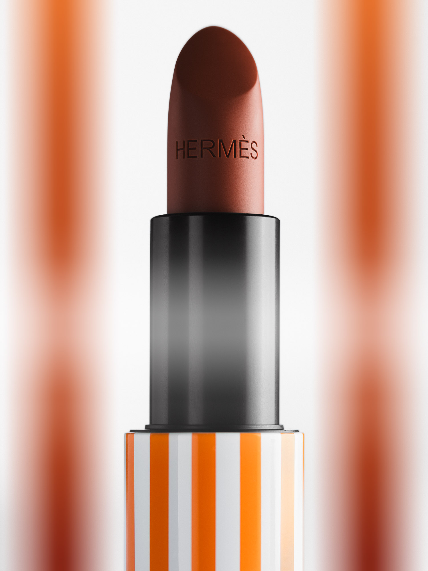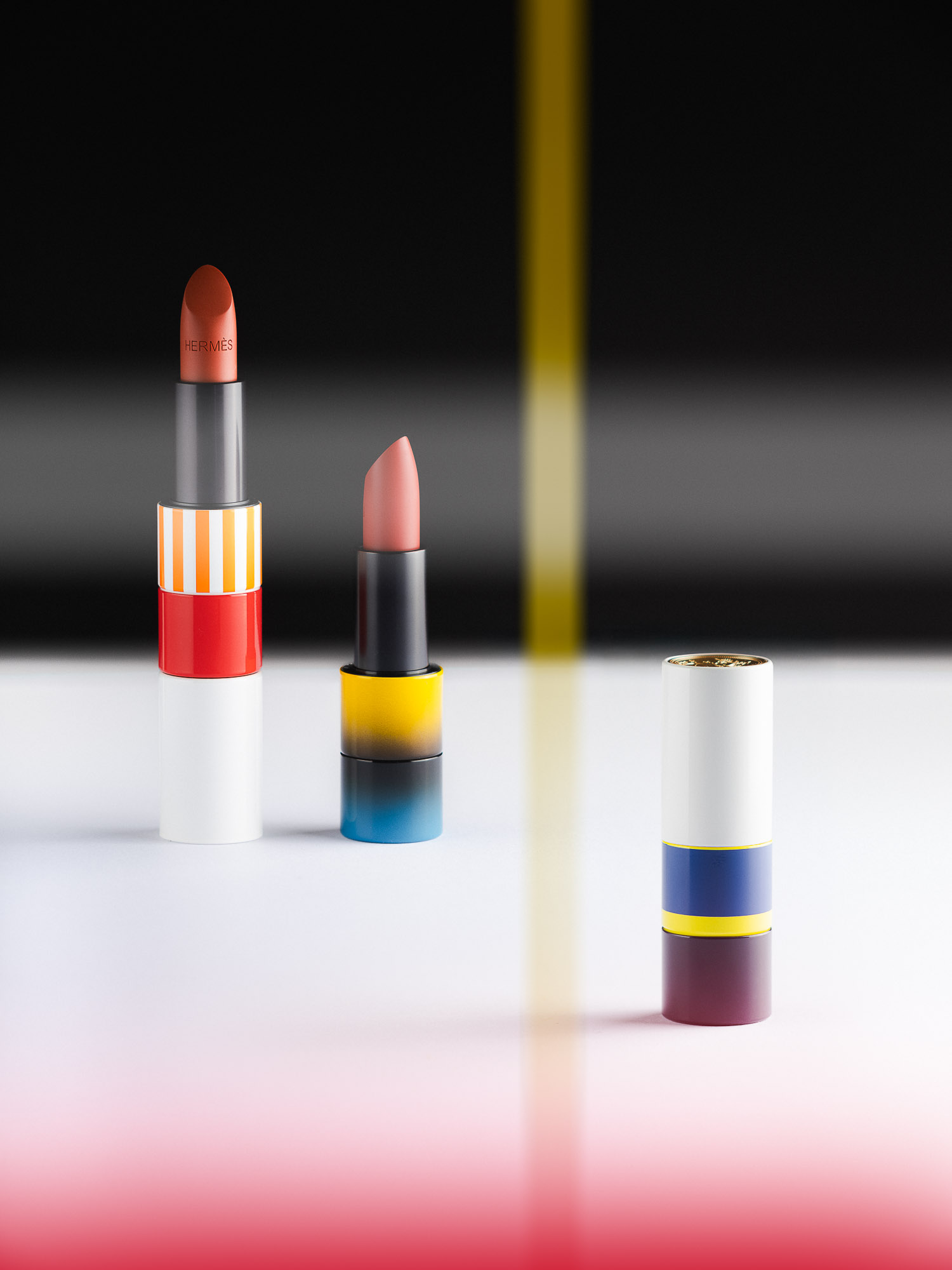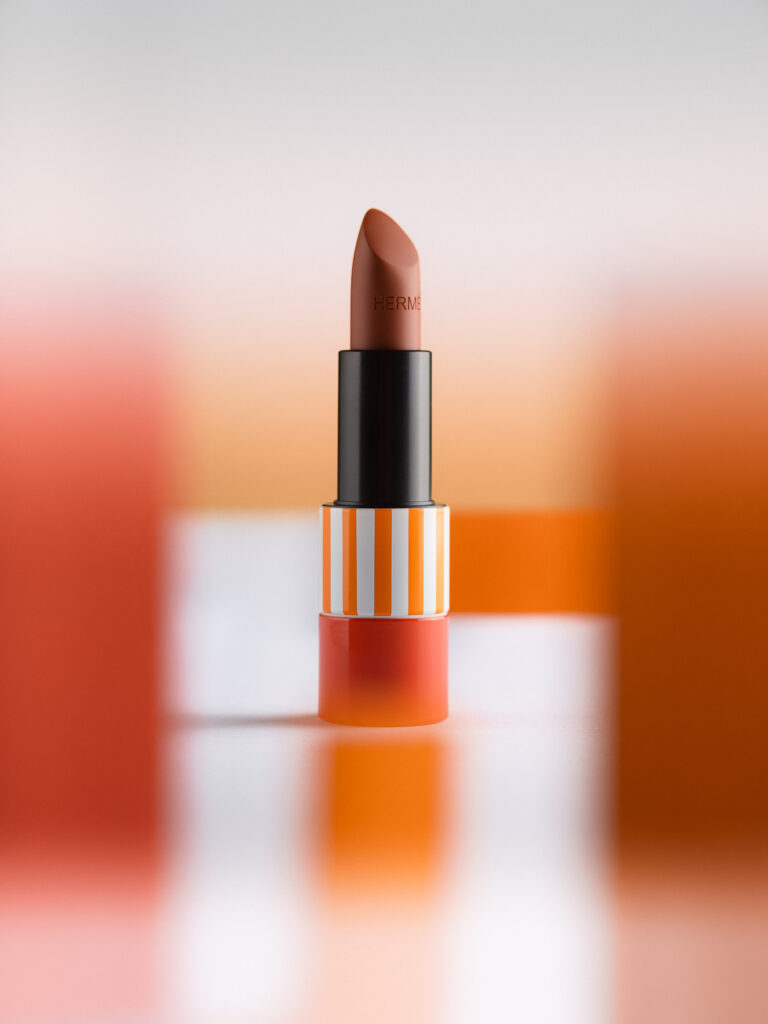 La célèbre gamme des rouges à lèvres Hermès déclinée dans un univers de lignes et de couleurs.