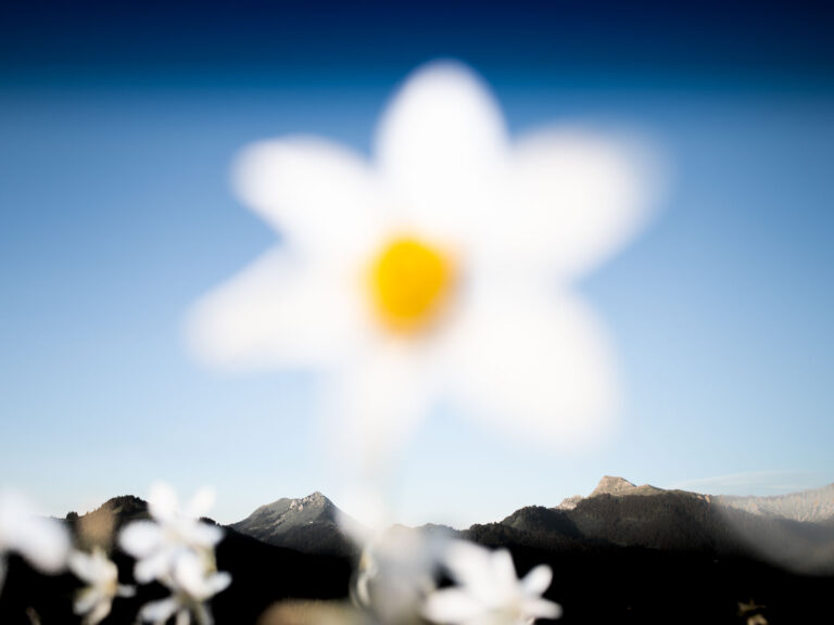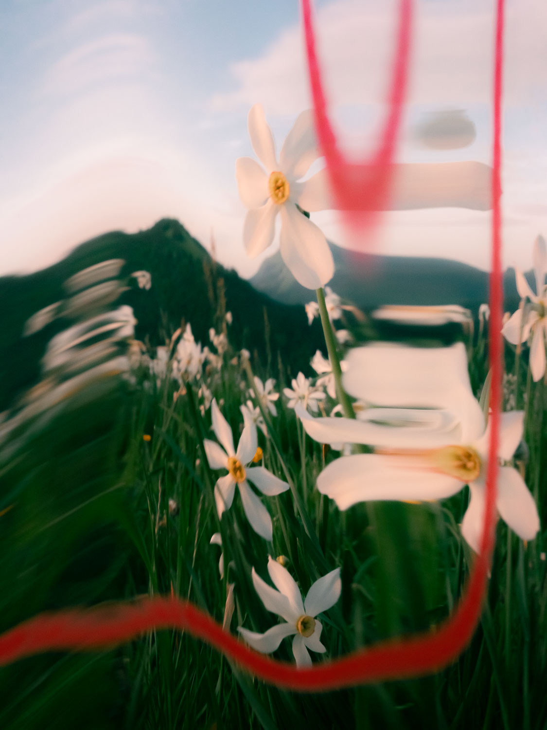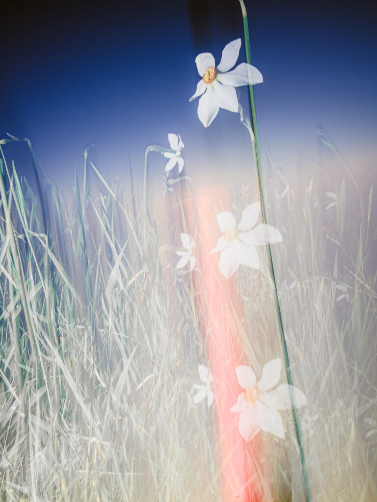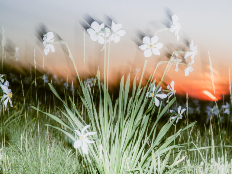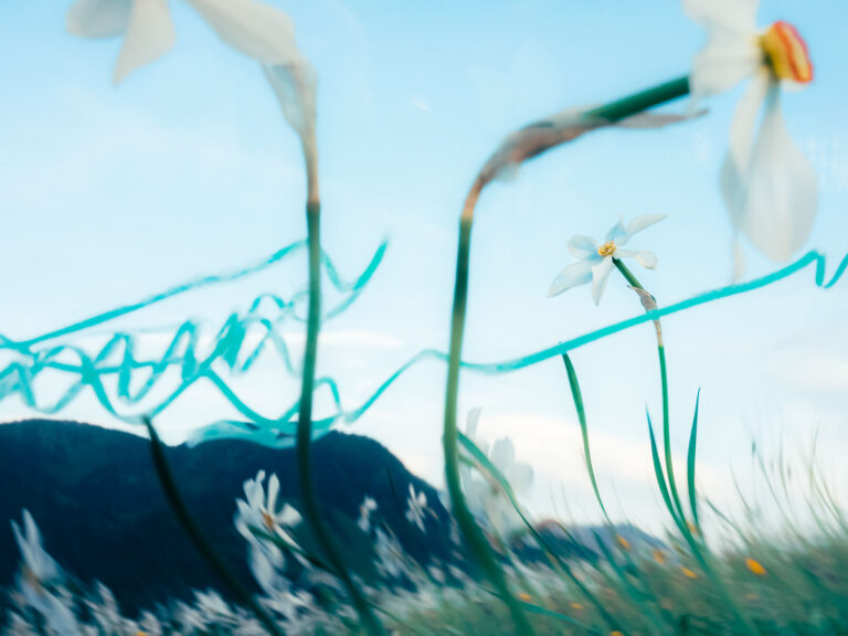 Un versant de narcisses, c’est une odeur mielleuse très forte. Trop forte quand on y reste longtemps. L’ivresse de ce parfum amène un peu de folie. Entouré des montagnes, on apprend à apprécier le temps qui passe, lentement. A regarder le soleil qui caresse la vallée. Et malgré tout, à dialoguer avec cette foule immobile encore habituée aux nuits fraîches d’altitude.