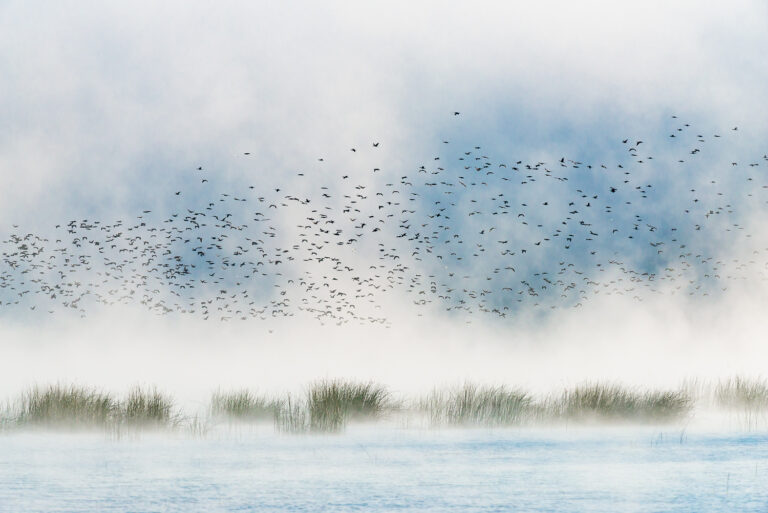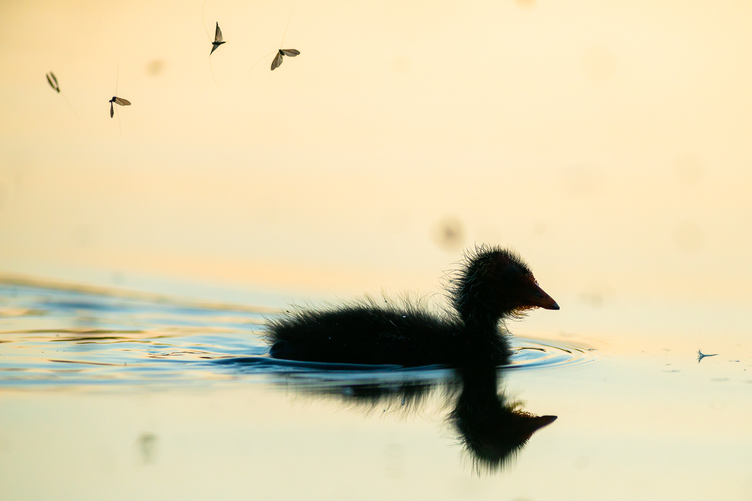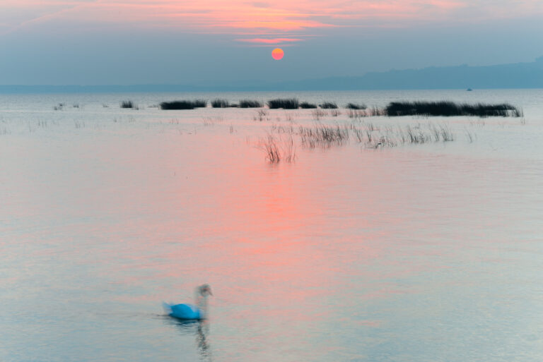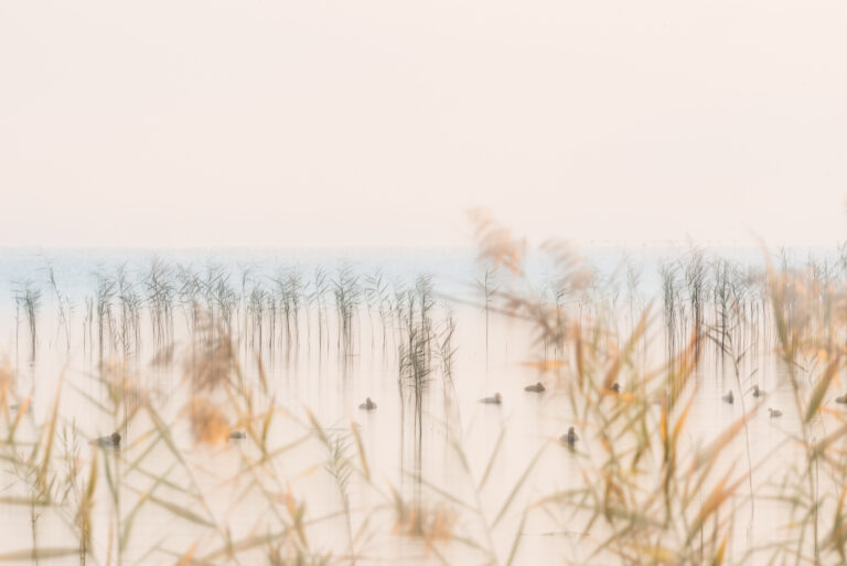 “La sensation des algues qui me frôlaient les jambes sur la plage d’Avenches ne me laissait déjà pas indifférent il y a quinze ans. Ramasser des coquillages vides sur le rivage, s’imaginer ce qui se trouvait de l’autre côté du lac, regarder les chevaux se baigner, tenter d’attraper les poissons qui se faufilaient entre mes jambes : les trois lacs me sont familiers depuis mon enfance. Quelques années plus tard, je me retrouve à immortaliser ces eaux. A la proposition du Musée de Morat, j’ai réfléchi sur les endroits naturels que je connaissais vraiment. Ils étaient, au final, peu nombreux. J’étais cependant persuadé de trouver matière à une quête photographique d’un an. J’ai alors sorti une carte et j’ai inscrit les points qui m’étaient connus. Je suis parti à la découverte de ceux que je ne connaissais pas. S’enfoncer un matin dans les roselières brumeuses du lac de Neuchâtel, pédaler le long de l’île St-Pierre à l’automne, me rendre sur le débarcadère de Morat durant la nuit, tous ces petits trajets devinrent progressivement des habitudes. J’ai cherché à montrer, avant tout, une vie sauvage très commune, à la portée de chacun d’entre nous. Réaliser ce projet aux côtés de Michel Roggo fut un honneur. C’est un photographe dont j’avais découvert les images pour la première fois à la télévision. J’étais tout juste adolescent et je trouvais sa pratique fascinante. » – extrait de la préface du livre “3 Lacs”, ed. Werd & Weber